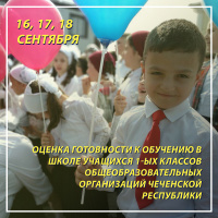 16.09.2019С 16 по 18 сентября 2019 года среди обучающихся 1-х классов МБОУ "СОШ №91 " проводится региональное исследование "Оценка готовности к обучению в школе учащихся 1-х классов общеобразовательных организаций Чеченской Республики". Диагностическое исследование проводится согласно регламенту.