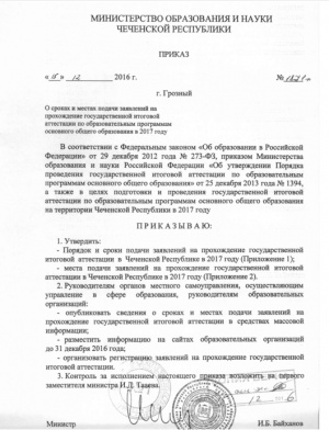 Приказ МОиН о сроках и местах подачи заявлений на прохождение государственной итоговой аттестации по образовательным программам основного общего образования в 2017 г.